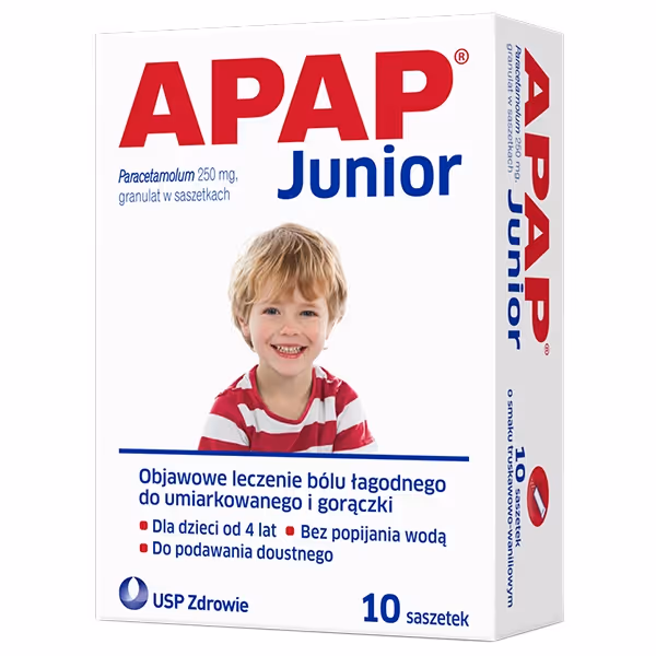 Apap Junior, dla dzieci od 4 lat granulat 250 mg, 10 saszetek