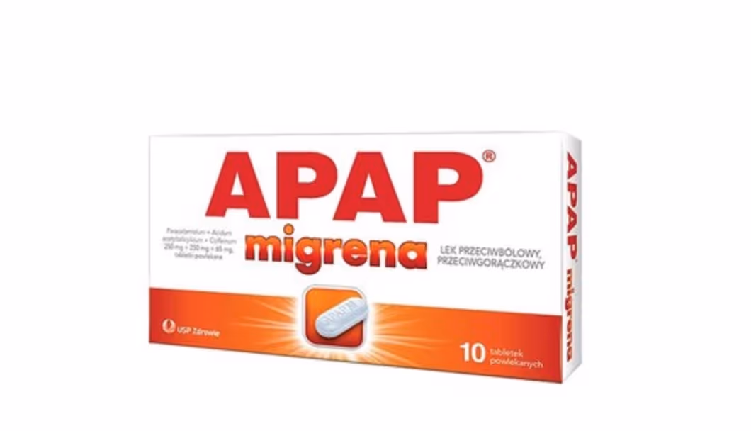 Apap migrena, 250 mg + 250 mg + 65 mg, tabletki powlekane, 10 szt.