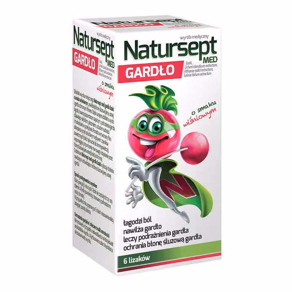 Natursept Med Gardło, Lizaki o smaku wiśniowym, 6 sztuk