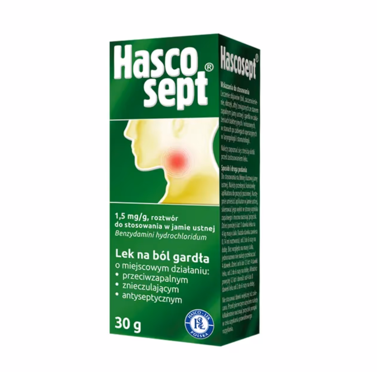 Hascosept, 1,5 mg/g, aerozol do stosowania w jamie ustnej, 30 g