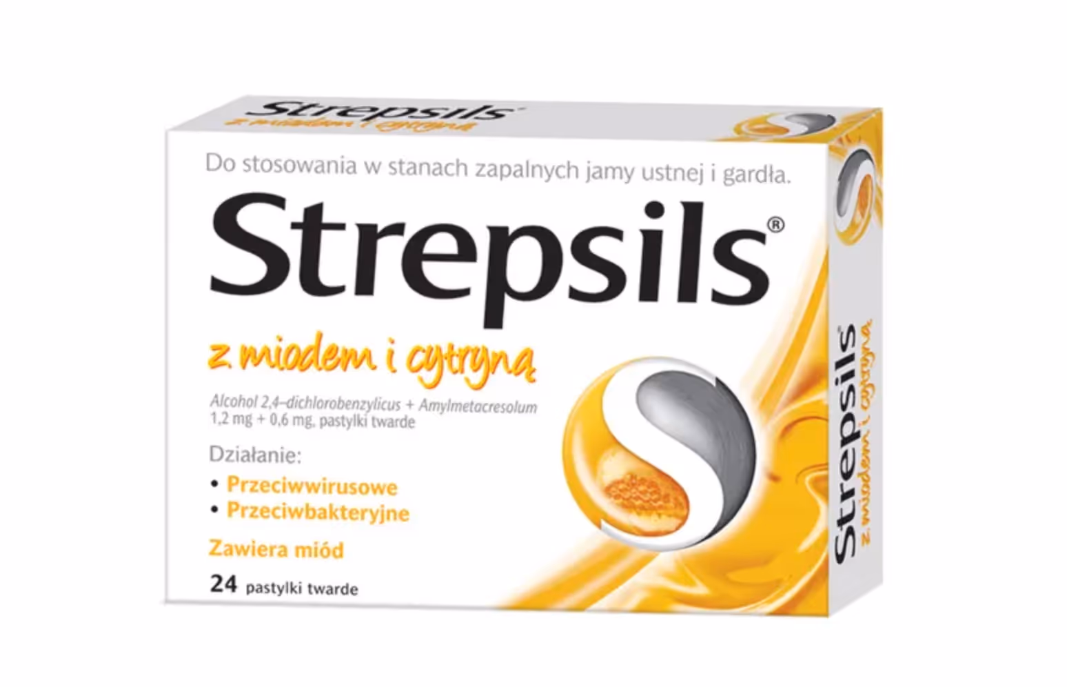 Strepsils z miodem i cytryną na ból gardła, 24 pastylki