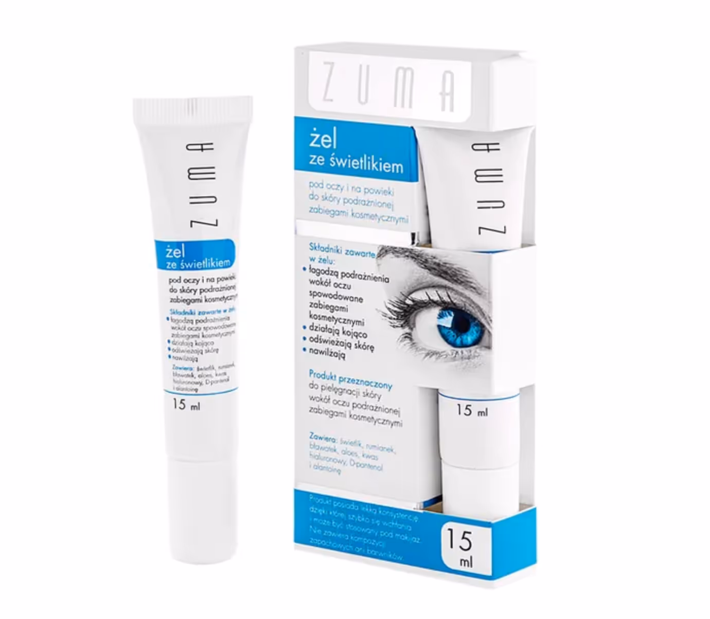 Zuma, żel ze świetlikiem pod oczy i na powieki dla skóry podrażnionej zabiegami kosmetycznymi, 15ml