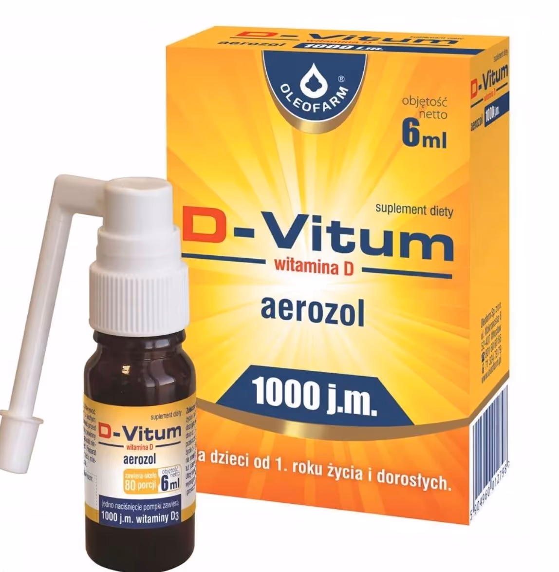 D-Vitum Forte, 1000 j.m. Witamina D dla dzieci od 3 roku życia i dorosłych, Oleofarm aerozol, 6ml